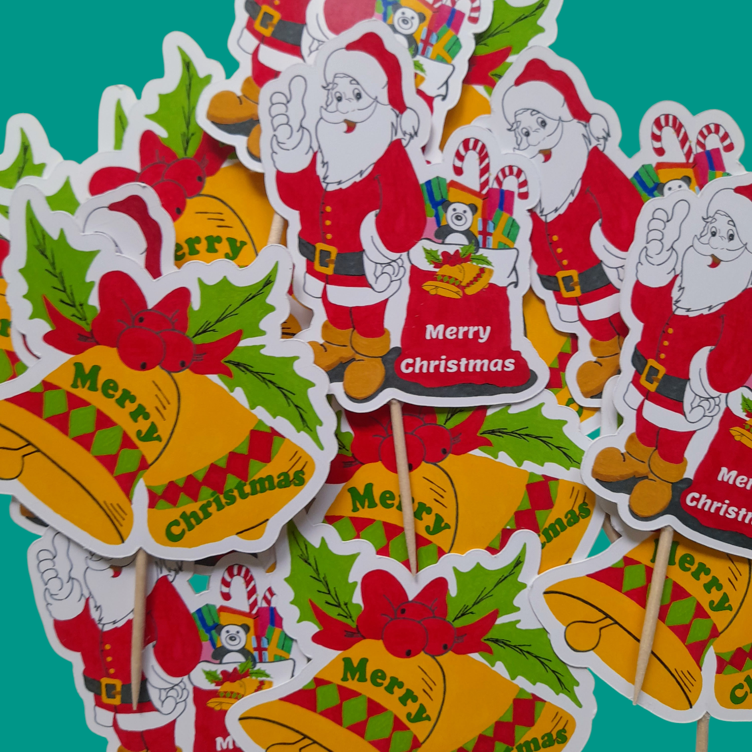 Ideal for your Christmas party/wishes to decorate with cup cakes. Jingle Bells and Santa in this cupcake topper